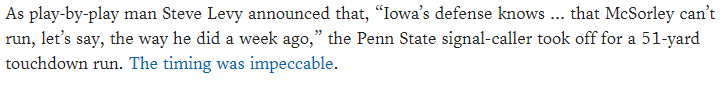 Having said ALL of that, am I guaranteeing that McSorley will be successful in NFL? Absolutely not. College success doesn’t always translate to NFL, and I get that. But I definitely think he at least has a chance to make some noise.