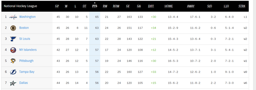 They are currently sitting pretty tied at 4th with the Islanders in the NHL. Their current record is 26-12-5, with a +30 goal differential.